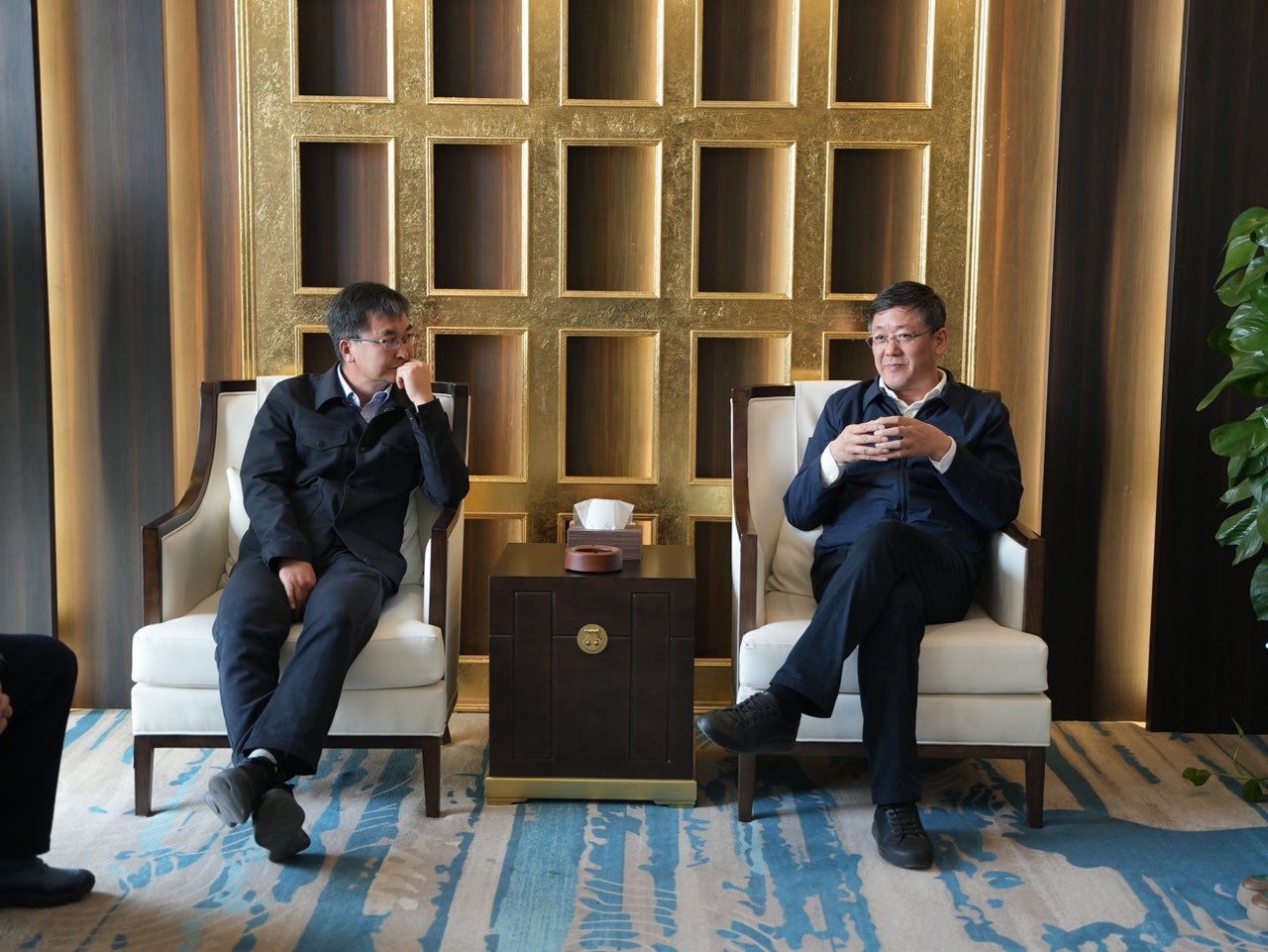 中午的专访环节,梁钧董事长、苗磊董事组织对拓主席一行接待和交流,在欢快而轻松的氛围里,梁董对家乡的父母官的到来表示热情的欢迎,并讲述了自己创立金正、产业转型、经营理念及创业情怀,历经三十年发展,集团始终坚持“追求卓越,实业报国”的企业精神,稳固能源与工程传统双引擎,突出科技创新力量,并对家乡的关怀表示感谢,也愿意用实际行动为家乡做出点贡献,为家乡的经济发展作出贡献。