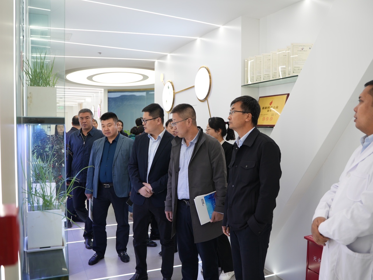 交流会后,李总邀请政协领导实地参观了集团主要产业板块,包括能投、工程、数字科技、供应链、总承包、智慧安防消防、生物科技及建科院等,让各位领导更加直观的感受集团的产业布局和强劲发展势头。