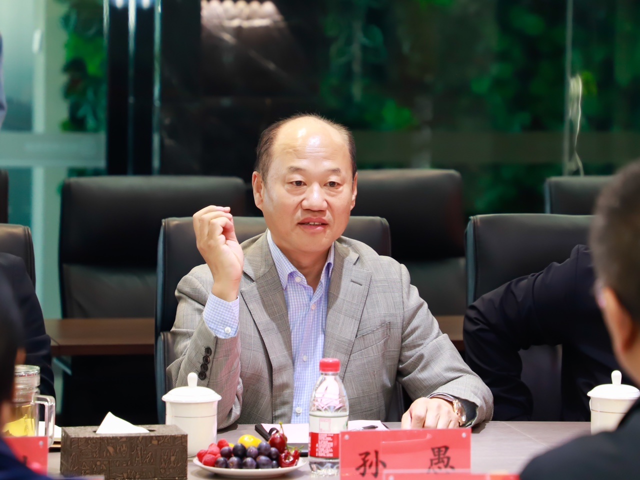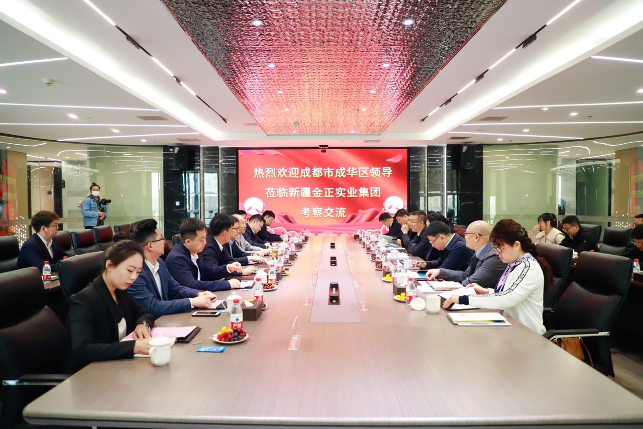 5月9日上午,成都市成华区区委副书记、区政府区长袁顺明、区政府副区长吴瑜琳一行13人莅临金正实业集团考察交流。新疆金正实业集团执行总裁孙愚、秘书长兼新疆金正生物科技有限公司董事长李学刚及中钧科技相关领导参加座谈。