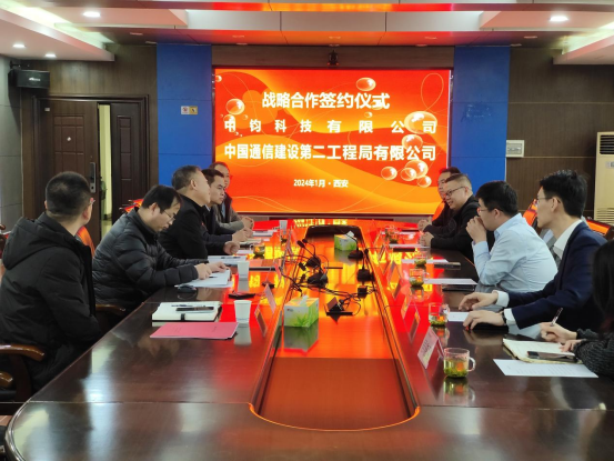 中钧科技应邀前往中国通信建设第二工程局有限公司,王书记对中钧科技一行人的到来表示热烈欢迎。会上,双方签署了战略合作协议,就构建互利双赢、发展、深度融合的合作,不断提高市场品牌形象和竞争力达成了共识;新的一年将持续深化品牌共建,共同赋能企业数字化转型,为企业的提质增效添砖加瓦。